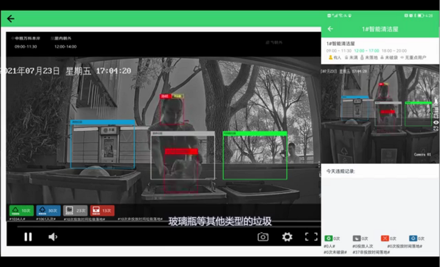 AI云上督導智能體系可以安裝到任意普通垃圾房內(nèi),通過AI身份識別攝像頭,可以精準識別垃圾種類、質(zhì)量、數(shù)量,時間等投放信息,確保分類質(zhì)量。同時,利用監(jiān)控攝像頭信息化后臺連接還可進行遠程語音督導,一個督導員可管理多個投放點,有效降低人工成本,減少違規(guī)投放行為,提高分類質(zhì)量。