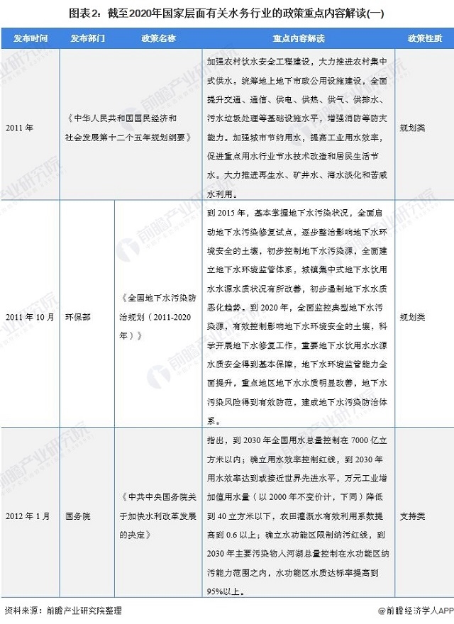 圖表2:截至2020年國(guó)家層面有關(guān)水務(wù)行業(yè)的政策重點(diǎn)內(nèi)容解讀(一)