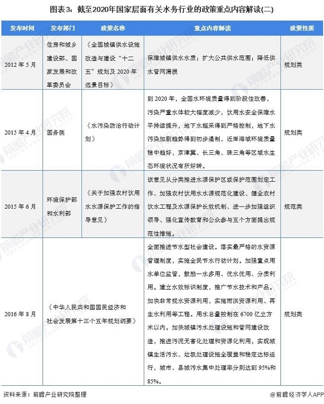 圖表3:截至2020年國(guó)家層面有關(guān)水務(wù)行業(yè)的政策重點(diǎn)內(nèi)容解讀(二)