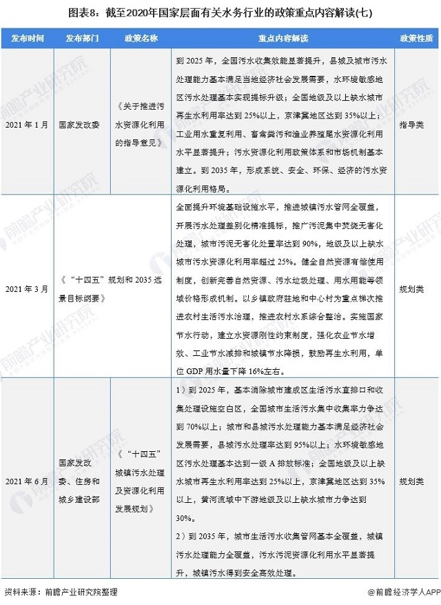 圖表8:截至2020年國(guó)家層面有關(guān)水務(wù)行業(yè)的政策重點(diǎn)內(nèi)容解讀(七)