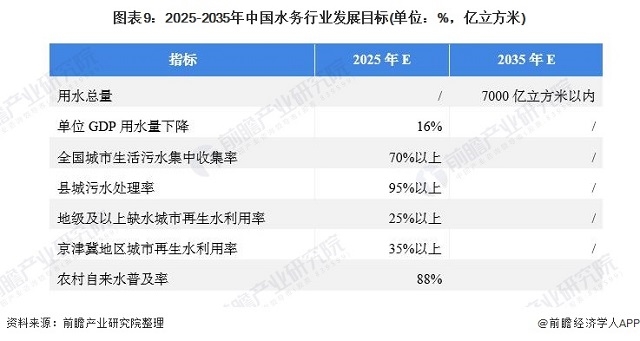 圖表9:2025-2035年中國(guó)水務(wù)行業(yè)發(fā)展目標(biāo)(單位:%,億立方米)