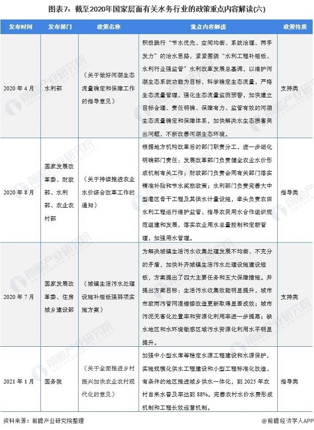 圖表7:截至2020年國(guó)家層面有關(guān)水務(wù)行業(yè)的政策重點(diǎn)內(nèi)容解讀(六)