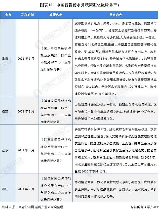 圖表12:中國(guó)各省份水務(wù)政策匯總及解讀(三)