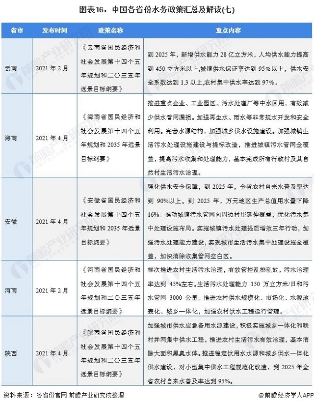 圖表16:中國(guó)各省份水務(wù)政策匯總及解讀(七)
