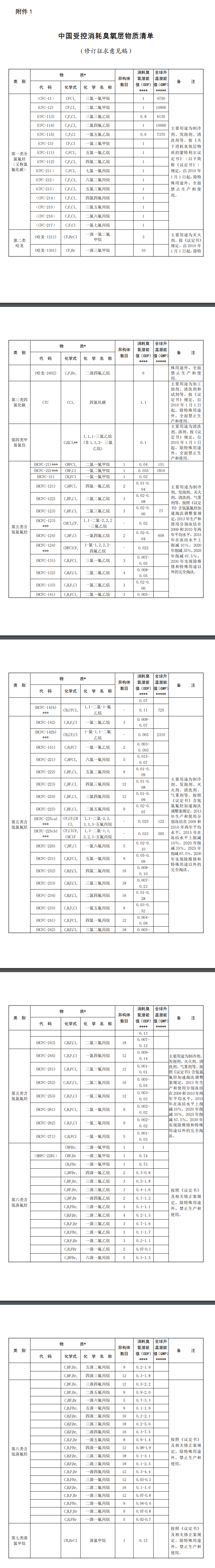 《中國(guó)受控消耗臭氧層物質(zhì)清單(修訂征求意見稿)》修訂說明