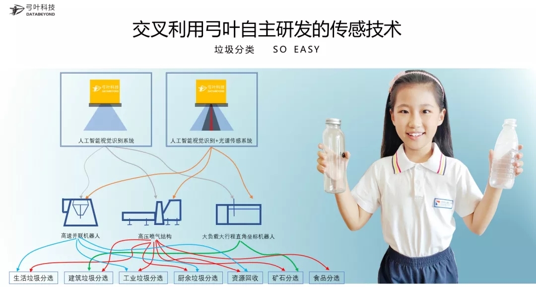 編輯從采訪中了解到,在中國政府尚未開展垃圾分類工作之前,莫卓亞便帶領(lǐng)一支由香港科大、西安交通大學(xué)、中國人民大學(xué)、哈爾濱工業(yè)大學(xué)的博士、碩士共同組成的研發(fā)團(tuán)隊,深入國內(nèi)數(shù)十個固廢處理廠,通過近三年時間,完成大數(shù)據(jù)采集、標(biāo)注,構(gòu)建了第一個固廢大數(shù)據(jù)庫。有了龐大的固廢大數(shù)據(jù)庫,再結(jié)合團(tuán)隊自主研發(fā)的弓葉云平臺、Multi-Sensor融合技術(shù)、機(jī)器人本體設(shè)計和驅(qū)控一體技術(shù)、以及Ai識別技術(shù),弓葉科技推出了第一臺人工智能垃圾分揀機(jī)器人PiCKiNG Ai®。緊接著,弓葉科技推出了第一臺基于人工智能的高速噴氣式光選機(jī)FASToAi™,高速皮帶機(jī)最高時速可達(dá)6.5m/s,最大處理量可達(dá)50噸/小時。