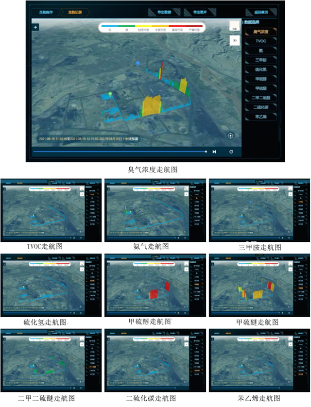 本次走航監(jiān)測出多個超標點位,共發(fā)現(xiàn)7 處甲硫醚超標區(qū)域、5 處二甲二硫醚超標區(qū)域、2 處甲硫醇超標區(qū)域、2 處硫化氫超標區(qū)域、1 處臭氣濃度超標區(qū)域和2 處臭氣濃度高值區(qū)域,另有1 處氨氣高值區(qū)域。便攜式惡臭監(jiān)測儀能夠快速定位異味濃度高值區(qū)域,通過監(jiān)測數(shù)據(jù),判斷出個別點位有較為嚴重的惡臭污染發(fā)生。通過本次走航監(jiān)測,該工業(yè)園區(qū)及時做出應對,避免了污染的大范圍擴散。本次走航監(jiān)測為該工業(yè)園區(qū)的后續(xù)治理工作提供了科學的數(shù)據(jù)支撐,得到了客戶充分的認可。