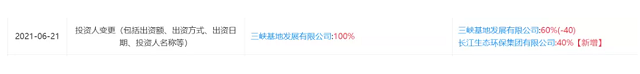 根據企查查資料顯示,今年6月,三峽環(huán)境投資人發(fā)生變更,長江環(huán)保集團入股,持有該公司40%股權。