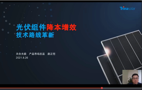 天合光能產(chǎn)品市場(chǎng)總監(jiān)唐正愷總監(jiān),帶來(lái)了主題為《光伏系統(tǒng)降本增效技術(shù)路線革新》的分享。