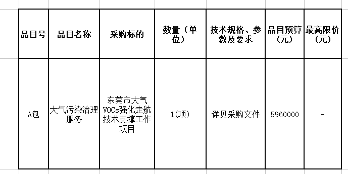 東莞市大氣VOCs強化走航技術(shù)支撐工作項目招標公告