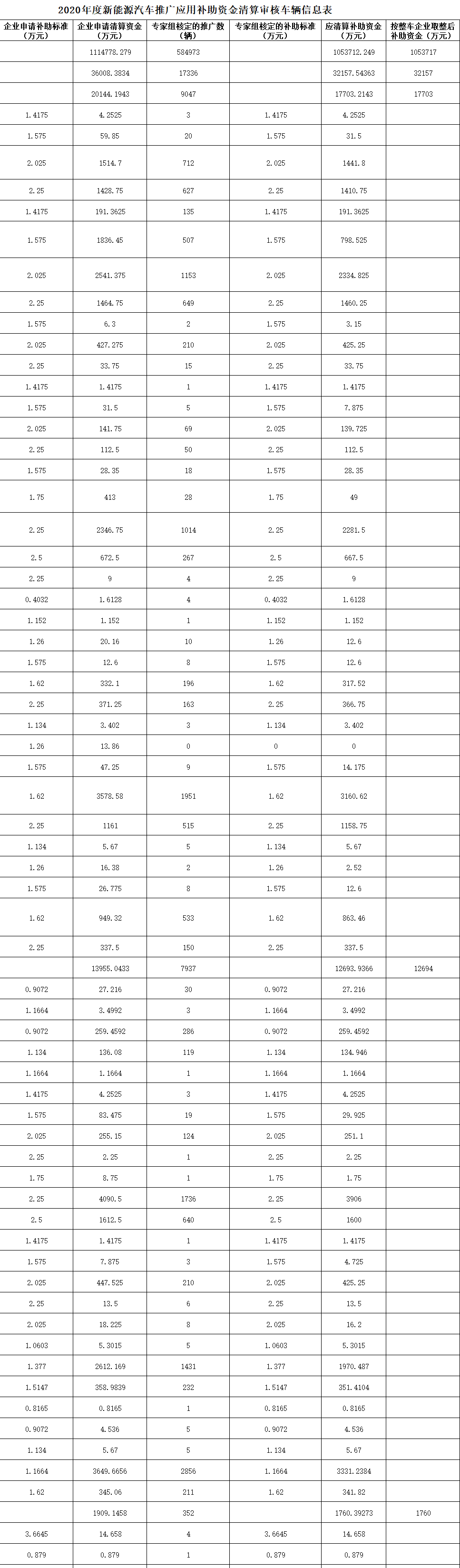 原標題:關于2016-2020年度新能源汽車推廣應用補助資金清算審核初審情況的公示