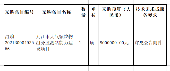 項(xiàng)目名稱(chēng):九江市大氣顆粒物組分監(jiān)測(cè)站能力建設(shè)項(xiàng)目