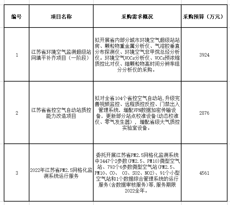 原標(biāo)題:超1.1億!江蘇一批大氣項(xiàng)目采購(gòu)意向公布