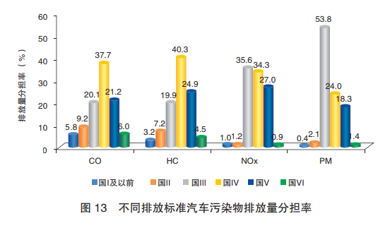 從排放標準上看,國Ⅲ、國Ⅳ、國Ⅴ4項污染物排放分擔率都相對高一些。