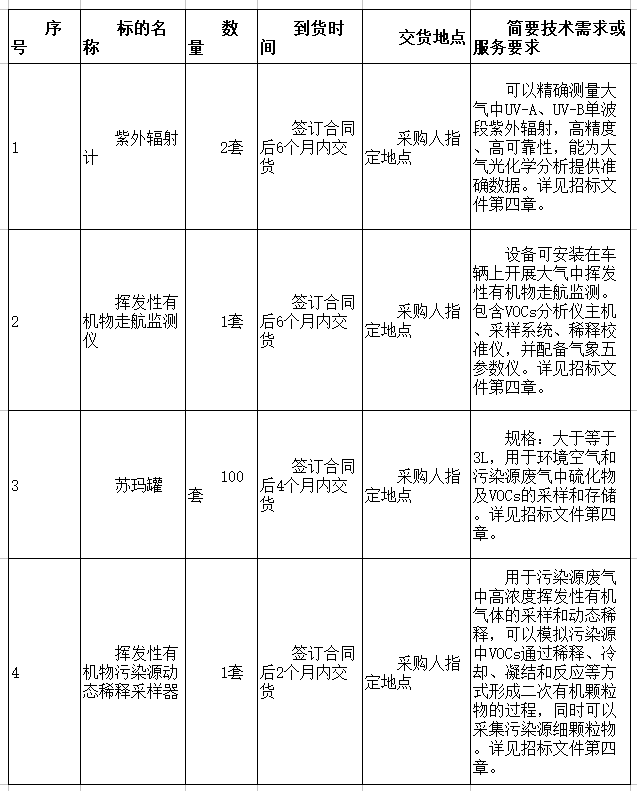 原標(biāo)題:北京市揮發(fā)性有機(jī)物解析能力建設(shè)一期(中央資金)-污染源監(jiān)測設(shè)備購置公開招標(biāo)公告