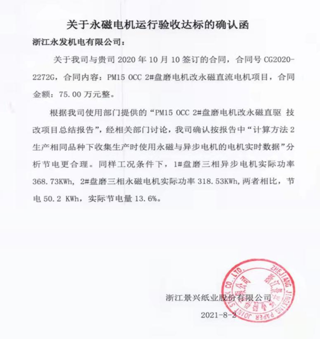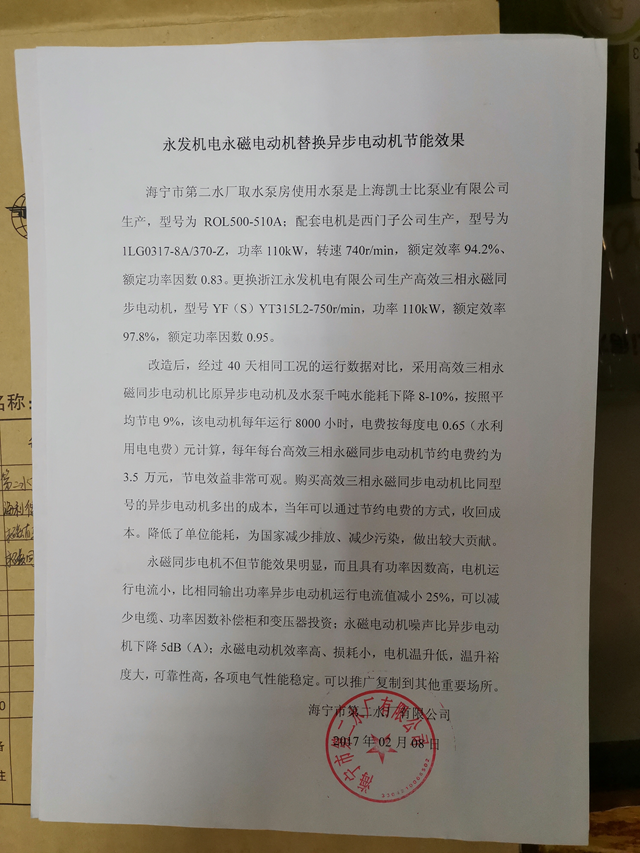 10年來永發(fā)先后為造紙、水泥、水利、鋼鐵、印染、軍工等行業(yè),千島湖飲水工程等項(xiàng)目貢獻(xiàn)了大量的高效高低壓電動(dòng)機(jī)、超高效高低壓永磁同步產(chǎn)品,助力節(jié)能減排。其中很多產(chǎn)品都屬于首臺(tái)套,永發(fā)機(jī)電永磁直驅(qū)電機(jī)與智能化系統(tǒng)也被水利廳列入新技術(shù)推廣目錄。