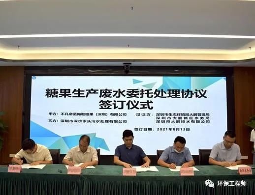 日前深圳市深水水頭污水處理有限公司、不凡帝范梅勒糖果(旗下產(chǎn)品有阿爾卑斯等)深圳有限公司舉行了《糖果生產(chǎn)廢水委托處理協(xié)議》簽約儀式。深圳市生態(tài)環(huán)境局大鵬管理局、大鵬新區(qū)水務(wù)局、大鵬排水有限公司作為見(jiàn)證方共同簽署了《糖果生產(chǎn)廢水委托處理協(xié)議》。