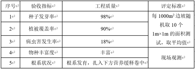 植被生長所需要的養(yǎng)分和水分在該系統(tǒng)中都得到解決,且雨水對坡體的沖刷少,種子的發(fā)芽率比正常高4——5倍。