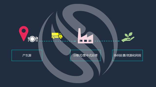 餐廚和廚余垃圾自產(chǎn)生開始,會(huì)經(jīng)過集中收集運(yùn)輸,通過分散式或集中式的方式進(jìn)行處理,最終被協(xié)同處置或資源化利用。