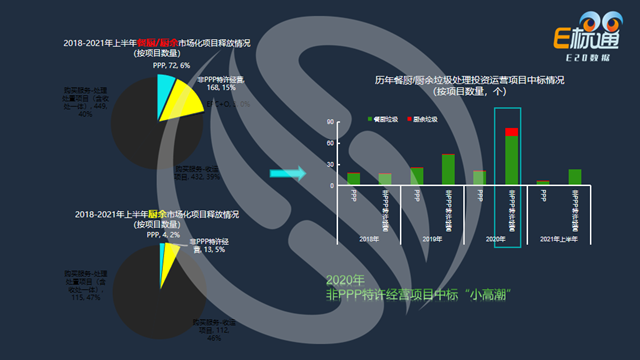 對(duì)餐廚/廚余垃圾PPP和非PPP特許經(jīng)營類市場(chǎng)化項(xiàng)目進(jìn)行分析。右圖是歷年餐廚/廚余垃圾投資運(yùn)營類項(xiàng)目的中標(biāo)情況,2020年非PPP特許經(jīng)營項(xiàng)目存在中標(biāo)的“小高峰”,E20研究院執(zhí)行院長、湖南大學(xué)兼職教授薛濤曾在“2020(第十四屆)固廢戰(zhàn)略論壇”上做題為《“十四五”固廢行業(yè)規(guī)劃與產(chǎn)業(yè)趨勢(shì)前瞻》的主旨演講,其中講到環(huán)衛(wèi)和焚燒等細(xì)分領(lǐng)域同樣迎來非PPP特許經(jīng)營項(xiàng)目的一個(gè)中標(biāo)小高峰。但不同服務(wù)模式的項(xiàng)目合規(guī)與否、合理與否,薛院長在演講中做了詳細(xì)的各細(xì)分領(lǐng)域合理合規(guī)的邏輯分析。