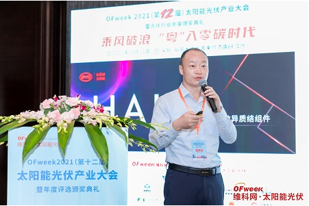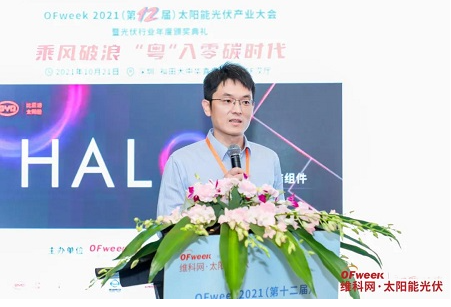 蘇州騰暉光伏技術(shù)有限公司研發(fā)總監(jiān)錢洪強(qiáng)先生,就基于異質(zhì)結(jié)電池方面的問(wèn)題,發(fā)表了主題為《雙碳目標(biāo)下光伏技術(shù)發(fā)展的趨勢(shì)討論》的精彩演講。