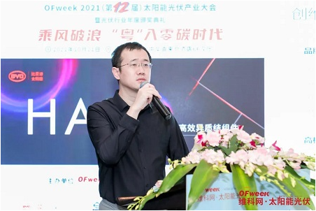 2021年10月21日,由中國(guó)高科技行業(yè)門戶OFweek維科網(wǎng)主辦的“OFweek 2021(第十二屆)太陽(yáng)能光伏產(chǎn)業(yè)大會(huì)暨光伏行業(yè)年度評(píng)選頒獎(jiǎng)典禮”在深圳成功舉辦。