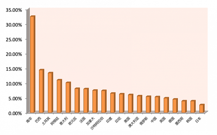 圖2:G20國(guó)家/地區(qū)失業(yè)率排名。數(shù)據(jù)來(lái)源:Trading Economics
