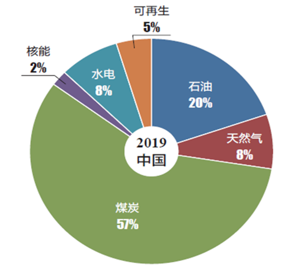 圖4:2019年中國(guó)一次能源結(jié)構(gòu)。數(shù)據(jù)來(lái)源:《BP世界能源統(tǒng)計(jì)年鑒》