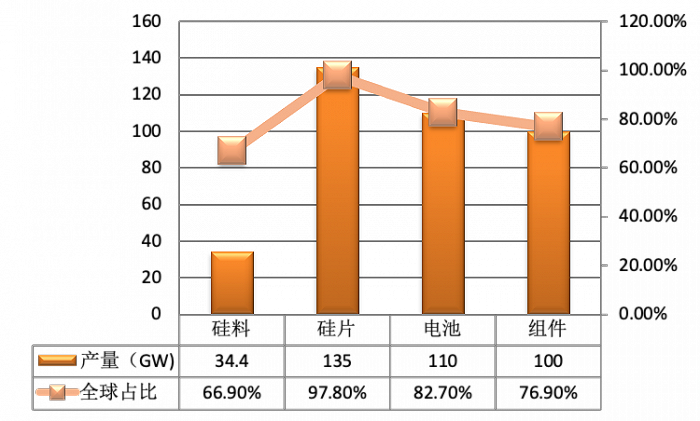 圖3:2019年中國(guó)光伏產(chǎn)品產(chǎn)量及全球占比。數(shù)據(jù)來(lái)源:CPIA三、中國(guó)尚存哪些劣勢(shì)?