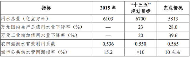 我國在“十三五”節(jié)水型社會建設主要目標指標完成情況,見下圖: