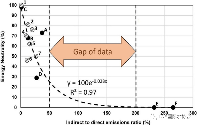 另外,他們還考察了能量回收水平與直接排放和間接排放的關(guān)系。除了波蘭的6個(gè)污水廠,他們還與世界其他地區(qū)的7個(gè)污水廠一起做了對(duì)比,其中污水廠1-3來自澳大利亞,4來自美國,5-6來自北歐,7來自意大利。