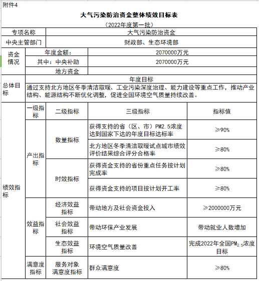 4.大氣污染防治資金整體績效目標(biāo)表