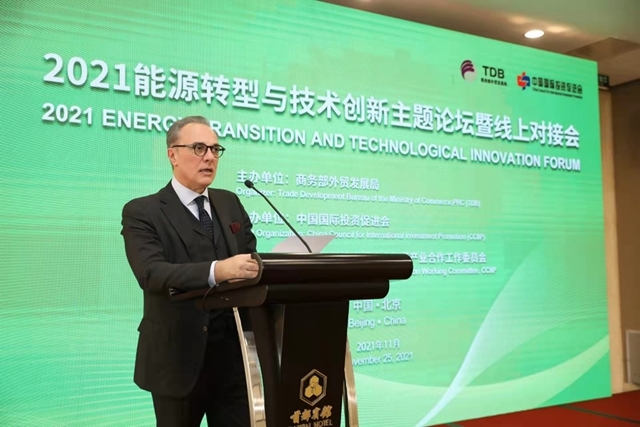 2021年11月25日下午,由商務(wù)部外貿(mào)發(fā)展局主辦、中國國際投資促進會承辦、中國國際投資促進會能源產(chǎn)業(yè)合作工作委員會協(xié)辦的“2021年能源轉(zhuǎn)型與技術(shù)創(chuàng)新主題論壇暨線上對接會”成功舉辦。本次論壇以“能源轉(zhuǎn)型與技術(shù)創(chuàng)新”為主題,聚焦“雙碳目標”背景下的能源轉(zhuǎn)型與技術(shù)創(chuàng)新,宣傳推廣自主品牌企業(yè),促進中外企業(yè)在清潔能源開發(fā)利用、傳統(tǒng)能源節(jié)能減排等領(lǐng)域開展深入交流與合作。