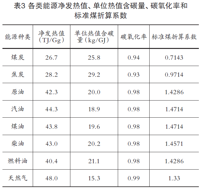 ,為二氧化碳排放量,Gg;Ei表示第i種能源消費(fèi)量,kgce;NCVi為第i種能源凈發(fā)熱值,TJ/Gg;Cc為單位熱值碳含量,噸C/TJ;COF為碳氧化因子,該值為1,表示碳完全氧化;i=1,2,3…表示i種能源。