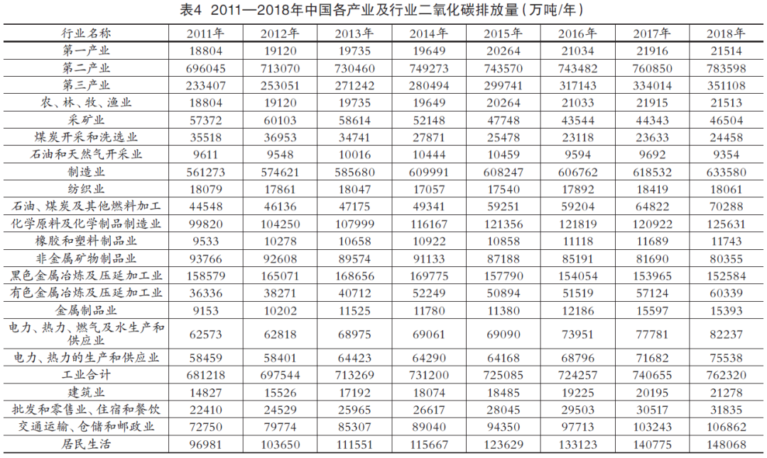 (二)中國(guó)各產(chǎn)業(yè)、行業(yè)二氧化碳排放量及測(cè)算方法