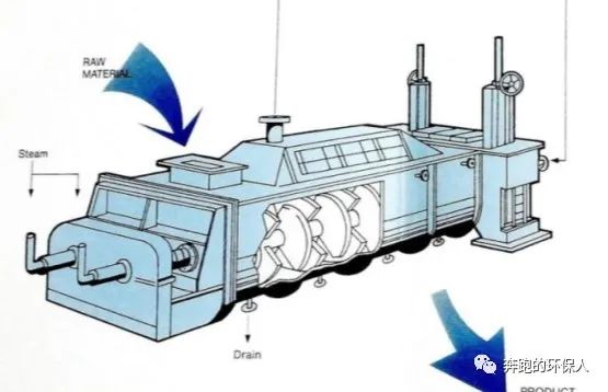 熱源:干化所需熱源來自焚燒后煙氣換熱產(chǎn)生的蒸汽,不足的部分來自輔助燃氣鍋爐產(chǎn)生的蒸汽