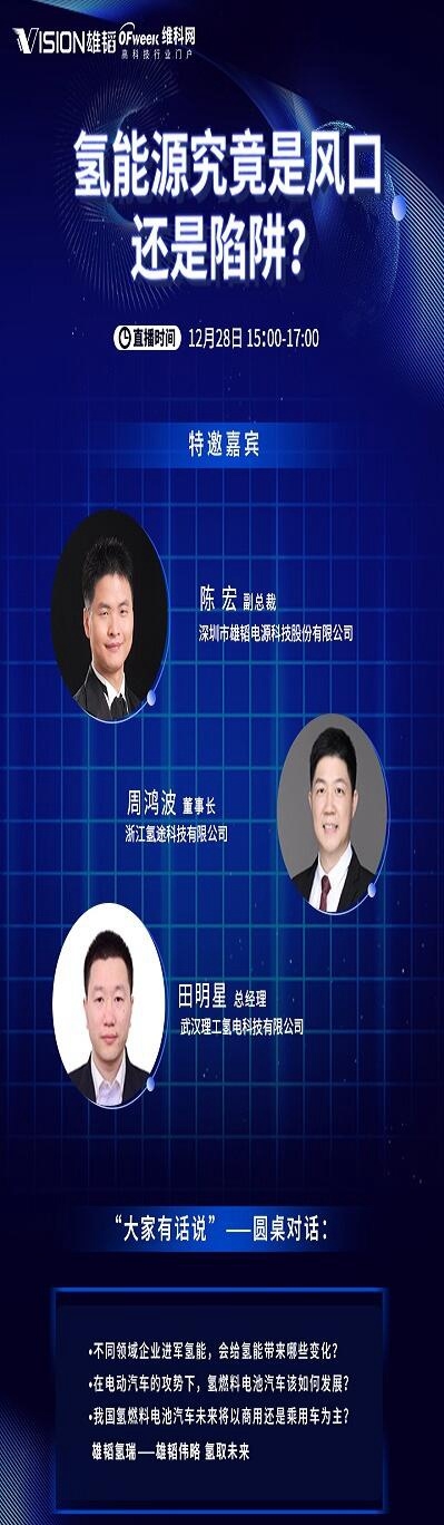 但是,當(dāng)前氫燃料電池也存在成本高企、配套設(shè)施欠缺、技術(shù)不夠成熟等痛點(diǎn)。這一背景下,由專注于氫能電堆研發(fā)與生產(chǎn)的雄韜氫瑞主辦,OFweek維科網(wǎng)氫能承辦的“中國氫能發(fā)展研討會(huì)”,將于2021年12月28日在OFweek在線直播平臺(tái)舉辦。