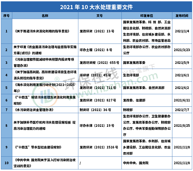 2021水處理政策文件回看至此,2022讓我們重整行囊再出發(fā)!還有更多年終盤點,請持續(xù)關注~