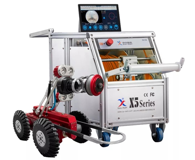 2021年中儀股份自主研發(fā)生產(chǎn),推出全景量化管道機器人。X5-H管道全景量化檢測機器人由全景鏡頭、管道側(cè)掃儀、X5-H系列爬行器、電纜盤及控制系統(tǒng)組成。檢測過程中,實時同步呈現(xiàn)管道高清視頻、橫斷面輪廓、全景圖、色譜圖等多項數(shù)據(jù)。全景量化檢測技術(shù)可輸出管道內(nèi)壁全景展開圖和管道橫斷面輪廓圖,并實現(xiàn)管道全景三維模型的構(gòu)造輸出,對管道變形、沉積、缺陷尺寸、體積進行直觀展示和量化分析,為養(yǎng)護與修復(fù)作業(yè)提供精準(zhǔn)的數(shù)據(jù)支撐。
