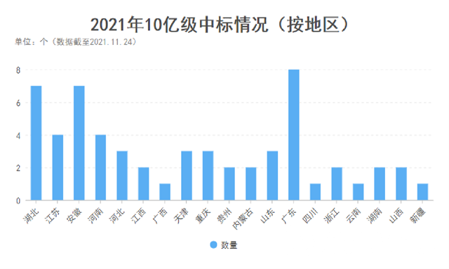 而從區(qū)域來看,廣東、湖北、安徽10億+標的數(shù)量名列前三,江蘇、河南、河北、天津、重慶、山東等也有數(shù)個10億+標的被拿下,區(qū)域市場熱度可見一斑。