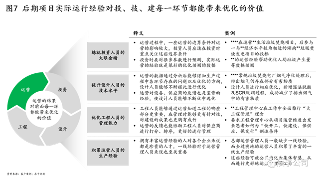 實(shí)踐表明,運(yùn)營作為項(xiàng)目全生命周期的最后一環(huán),后期實(shí)際運(yùn)營經(jīng)驗(yàn)對(duì)前端投資、設(shè)計(jì)、建設(shè)每一環(huán)都能進(jìn)行經(jīng)驗(yàn)和專業(yè)上的反哺,不僅可以練就投資人員的“火眼金睛”,還可以提升設(shè)計(jì)人員的技術(shù)水平、優(yōu)化工程人員的管理能力。以辰于服務(wù)的某東部客戶為例,通過將江蘇某城市垃圾焚燒項(xiàng)目的運(yùn)營經(jīng)驗(yàn)復(fù)制到經(jīng)濟(jì)、社會(huì)、人口發(fā)展相近的湖南某城市,幫助優(yōu)化人均垃圾產(chǎn)生量等預(yù)測(cè)數(shù)據(jù),提高投資測(cè)算的精度(見圖7)。