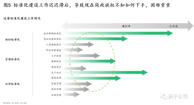 更要命的是,總部的能力提升與體系建設(shè)工作遲遲不能開展,即使開展也因?yàn)?ldquo;事務(wù)纏身”幾無進(jìn)展或質(zhì)量不高,當(dāng)下“時(shí)髦的”數(shù)字化、智慧化運(yùn)營更無從談起,或只能做做“面子工程”(見圖5)。