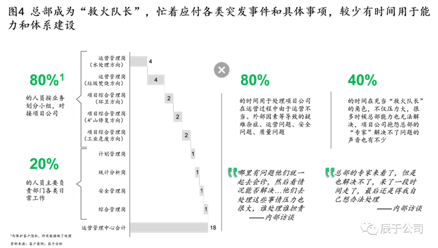 由于授權(quán)不充分或者下屬項(xiàng)目公司能力參差不齊,一些總部的運(yùn)營管理部門淪為“救火隊(duì)長(zhǎng)”,幾乎一半的時(shí)間忙著應(yīng)付各類突發(fā)事件和具體事項(xiàng),不僅壓力大,而且臨陣磨槍有時(shí)未必見效(見圖4)。