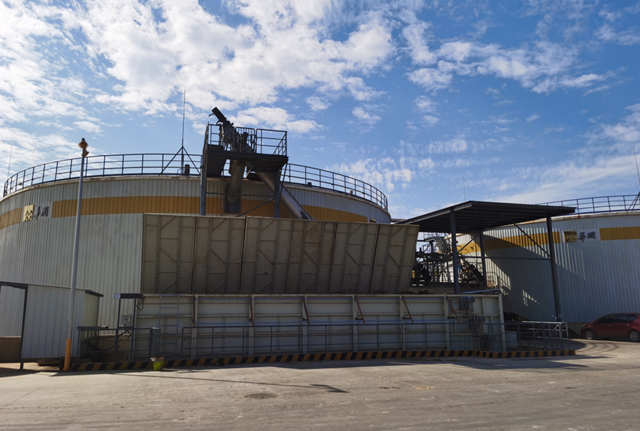 厭氧單元引進半干式高濃度厭氧發(fā)酵技術(shù),結(jié)合國內(nèi)原料特點進行了具有開創(chuàng)性的創(chuàng)新改進提升,建設半干式厭氧發(fā)酵罐3座,單體容積5,600m³。創(chuàng)新的半干式厭氧發(fā)酵工藝發(fā)酵濃度高、溫度高,對工況復雜的纖維類生物質(zhì)原料兼容性好,容積產(chǎn)氣率較傳統(tǒng)濕法厭氧工藝提升30%——50%,具有較高的生產(chǎn)效率。秸稈類原料的浮渣結(jié)殼問題是世界級難題,已經(jīng)成為制約此類原料厭氧應用的根本因素。隆安項目進行針對性發(fā)明創(chuàng)造,從根本上解決了秸稈在厭氧罐內(nèi)漂浮和結(jié)殼的技術(shù)難題,成功為秸稈類生物質(zhì)沼氣項目摸索出一套成熟可靠的厭氧發(fā)酵工藝。