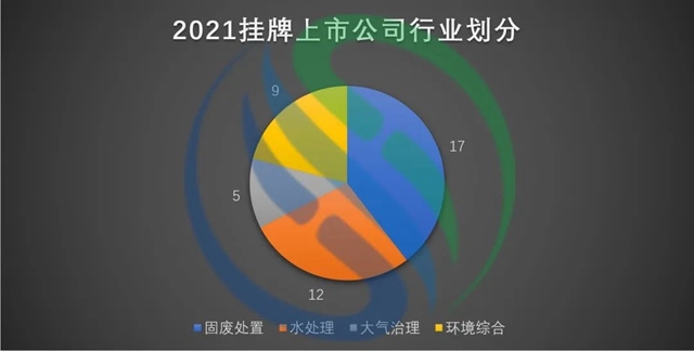 根據(jù)中國水網(wǎng)統(tǒng)計數(shù)據(jù)來看,2021年新增涉環(huán)保業(yè)務上市公司中,有17家從事固廢處置行業(yè),有12家從事水處理行業(yè),有9家從事環(huán)境綜合領域,有5家從事大氣治理行業(yè)。