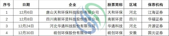 此外,目前還有美埃(中國)環(huán)境科技股份有限公司、華新綠源環(huán)保股份有限公司、湖南軍信環(huán)保股份有限公司、浙江天地環(huán)??萍脊煞萦邢薰?、江蘇環(huán)保產(chǎn)業(yè)技術研究院股份公司、渤瑞環(huán)保股份有限公司等企業(yè)正在上市路上。