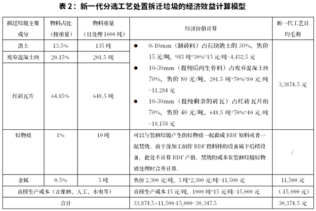 1.2采用新一代分選工藝處置1000噸拆遷垃圾所產生的日均經(jīng)濟效益