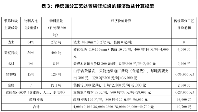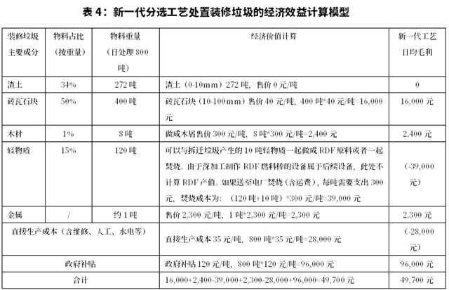 2.2采用新一代分選工藝處理800噸裝修垃圾所產生的日均經(jīng)濟效益