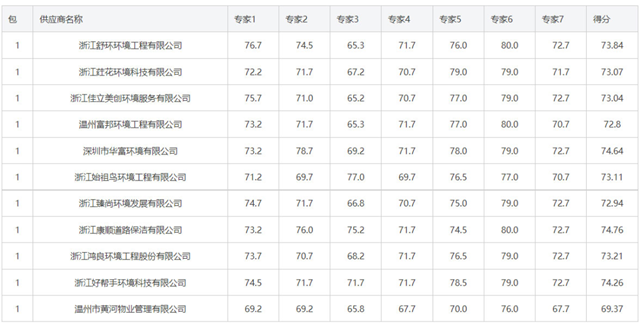 例如,表1中的浙江省溫州市甌海區(qū)瞿溪街道環(huán)衛(wèi)一體化項目,十街一鎮(zhèn)的服務(wù)費總預(yù)算金額約6億元。但項目被分成11個包,自去年8月開始招標(biāo)以來,11個項目先后由溫州富邦環(huán)境浙江好幫手環(huán)境、浙江佳立美創(chuàng)環(huán)境、浙江利東環(huán)境、浙江舒環(huán)環(huán)境、福龍馬集團(tuán)6家公司中標(biāo),其中富邦環(huán)境共中4標(biāo),好幫手和舒環(huán)環(huán)境各中兩標(biāo),佳立美創(chuàng)、利東環(huán)境和福龍馬各中一標(biāo)。