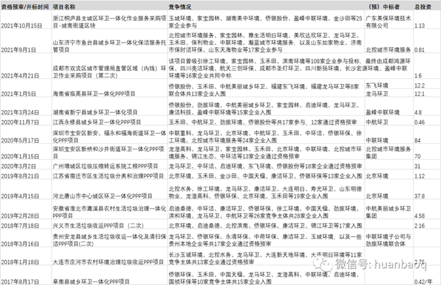 ▼表2 2017年至今部分競爭激烈的環(huán)衛(wèi)項目列表